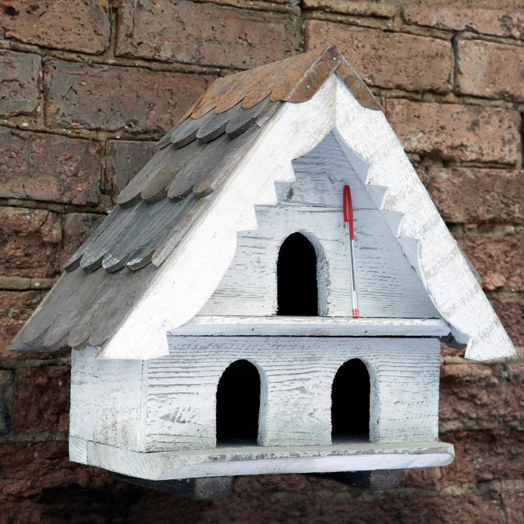 Crafted from reclaimed pine, these birdhouses offer a simple, functional design with a rustic finish. Each roof is made from individually hand-cut slats, which helps prevent warping or twisting over time - a result of thoughtful craftsmanship built for long-term use.