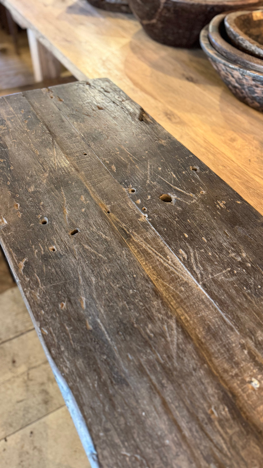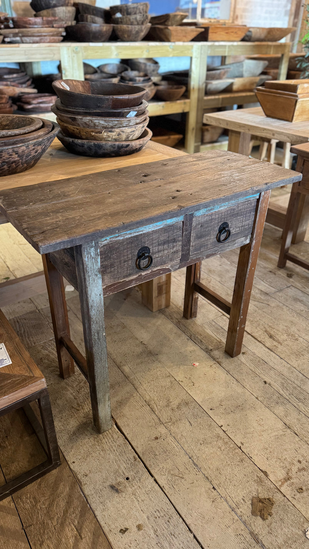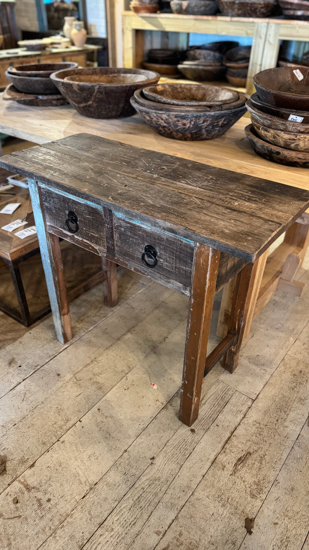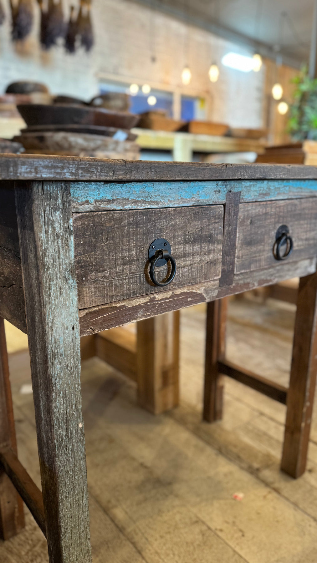 Lovely trestle table has two drawers and made with reclaimed characterful wood. The two drawer are large and perfect for storage and have two heavy ring pull handles.