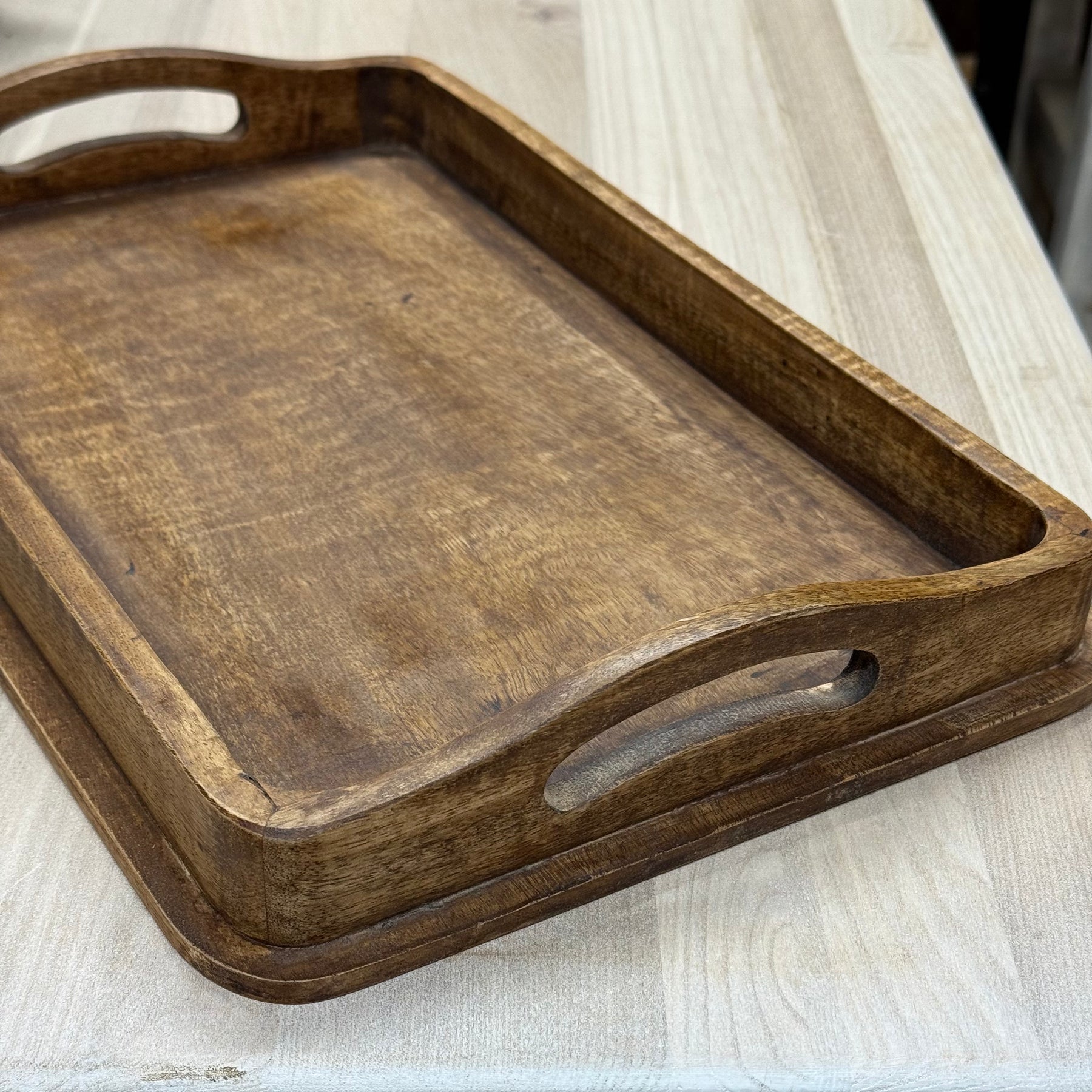 Regular price £18.00 Save Liquid error (snippets/product-template line 157): Computation results in '-Infinity'%Add a touch of natural charm to your home with this beautifully crafted wooden tea tray. Perfect for serving drinks, snacks, or simply styling on a coffee table, this tray combines rustic elegance with everyday practicality.