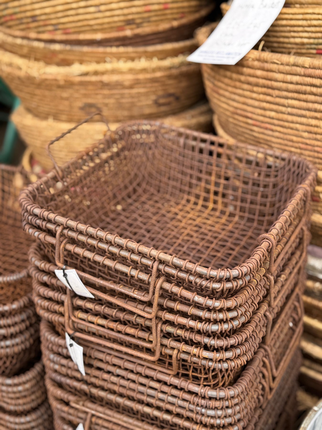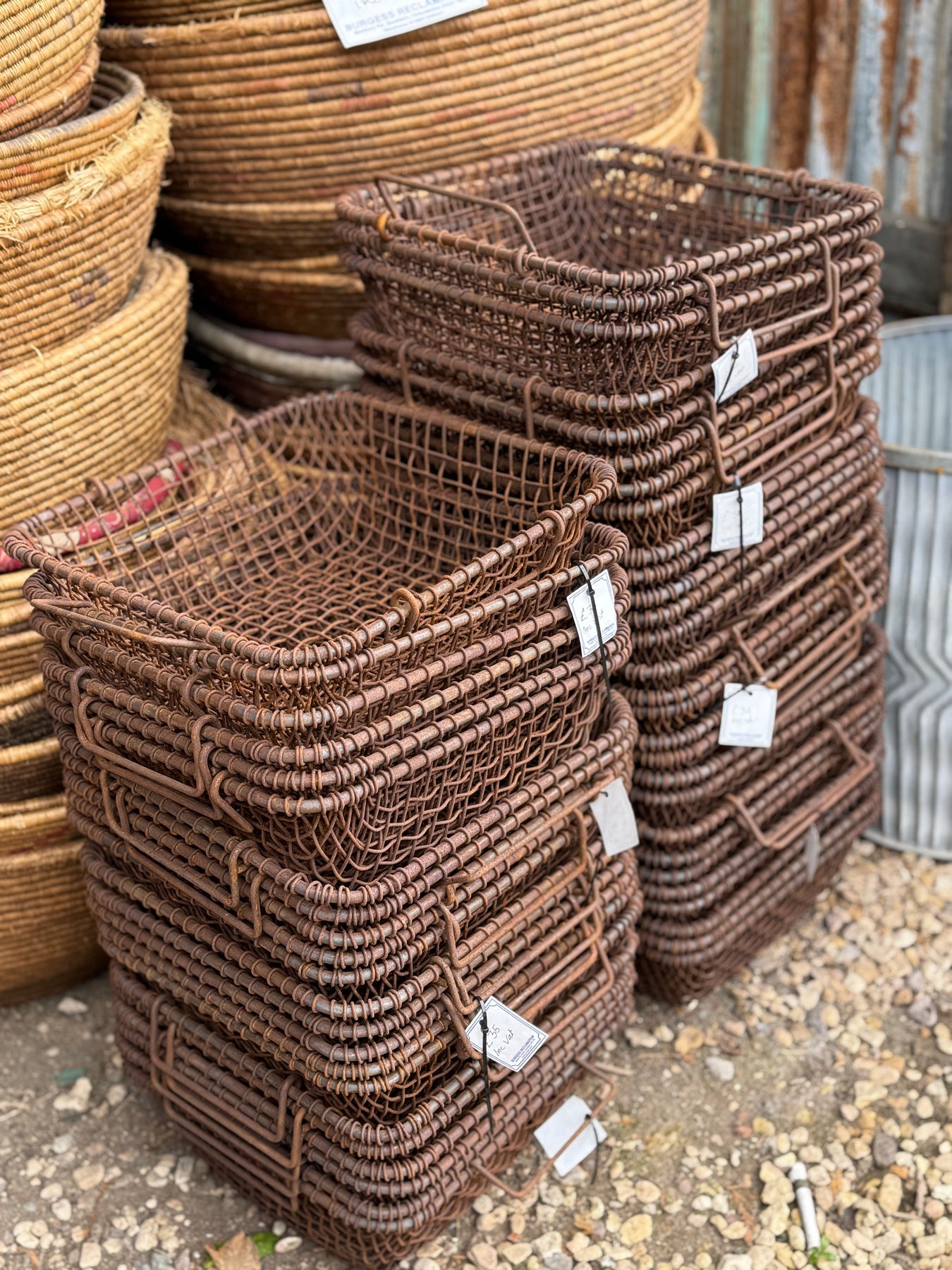 Regular price £35.00 Save Liquid error (snippets/product-template line 157): Computation results in '-Infinity'%Square, woven-metal baskets with a naturally weathered, rusty finish. Designed with two sturdy handles, they’re both heavy-duty and stylish — perfect for storage, display, or adding industrial charm to any space. Each basket measures 41 × 41 cm and 15 cm deep.